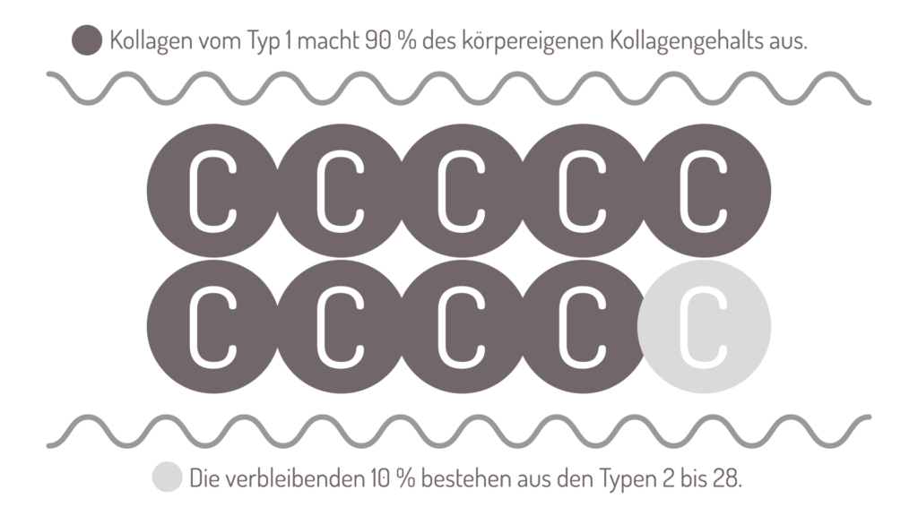 Kollagen ist das am häufigsten vorkommende Protein im menschlichen Körper. Das Wort «Kollagen» leitet sich vom griechischen Wort kólla ab und bedeutet übersetzt «Kleber». Der menschliche Organismus stellt sein eigenes Kollagen her, indem er Nahrungsproteine in Aminosäuren aufspaltet. Das Typ-1-Kollagen macht 90 % des körpereigenen Kollagens aus. Es kommt vor allem in Bindegeweben wie Haut, Sehnen, Knorpeln und Knochengewebe vor. Das Typ-1-Kollagen zeichnet sich durch sein einzigartiges Aminosäureprofil aus; es ist für die Elastizität und die Struktur der Haut sowie für die Gesundheit von Haaren und Nägeln verantwortlich.